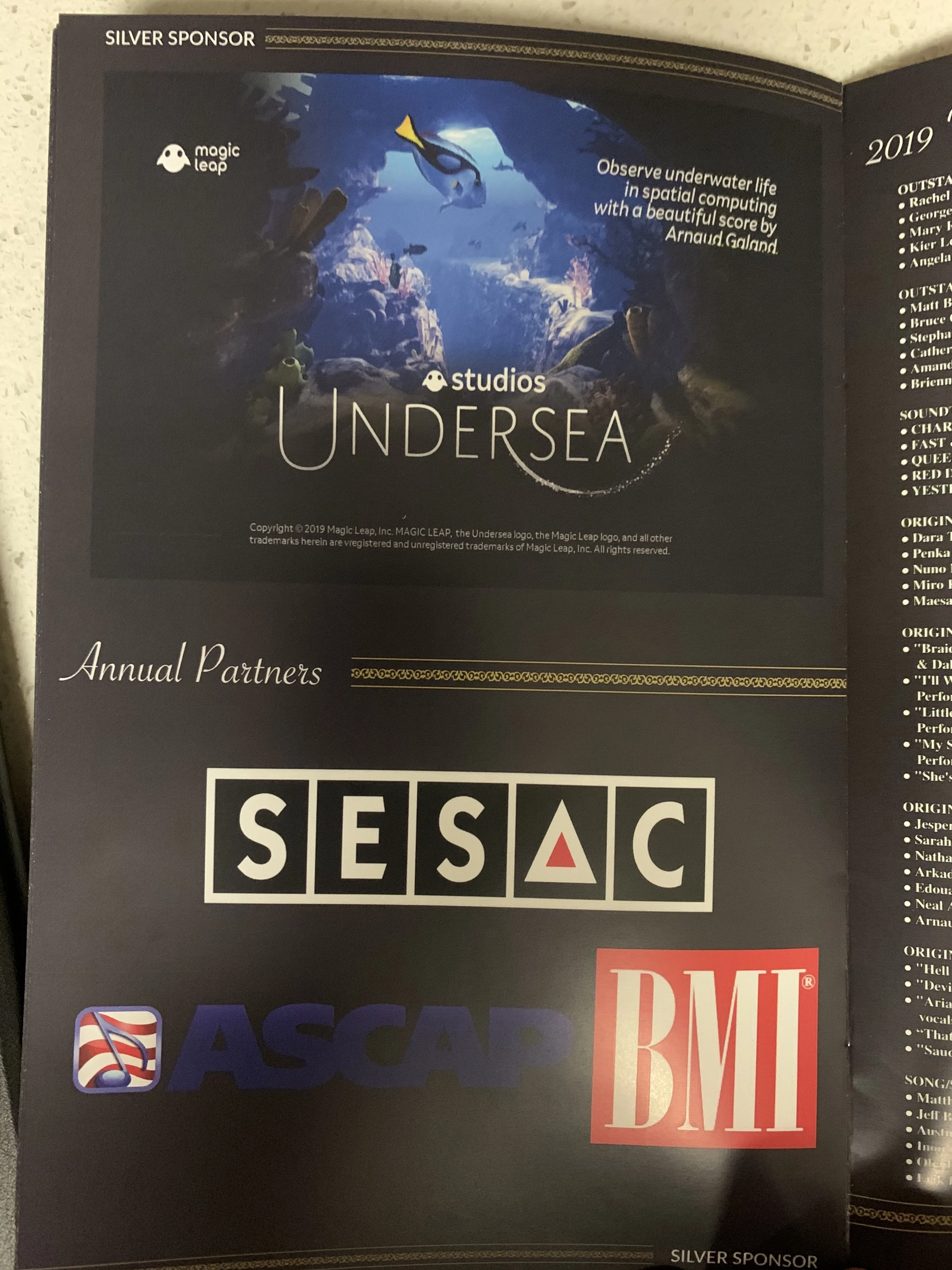 Both surprised and deeply honored to receive a nomination at the 2019 Hollywood Music in Media Awards for Best Original Score for the Undersea project, an amazing Mixed Reality experience I composed and led audio on at Magic Leap Studios.