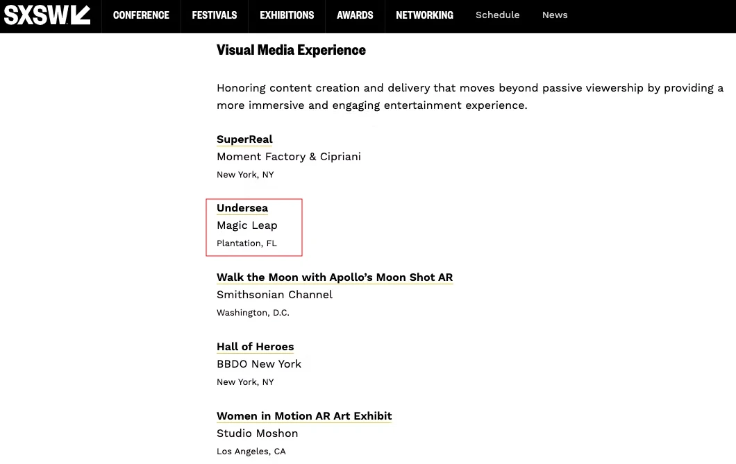 So proud to see Undersea being recognized as a finalist at the SXSW Innovation Awards. This prestigious event celebrates groundbreaking achievements in technology and creativity, and being selected in the Visual Media Experience category is a significant honor. It showcases our commitment to pushing the boundaries of visual storytelling and innovation.